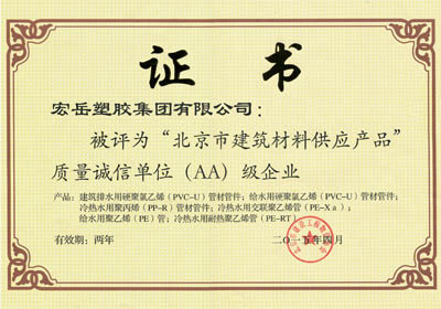 质量是产品的核心价值,诚信是企业的发展动力。凭借过硬的产品质量和良好的企业信誉,继2011年入选首批北京建筑材料供应单位产品质量诚信A级企业之后,2015年4月,乐鱼(中国)leyu获评北京建筑材料供应产品质量诚信AA级企业。