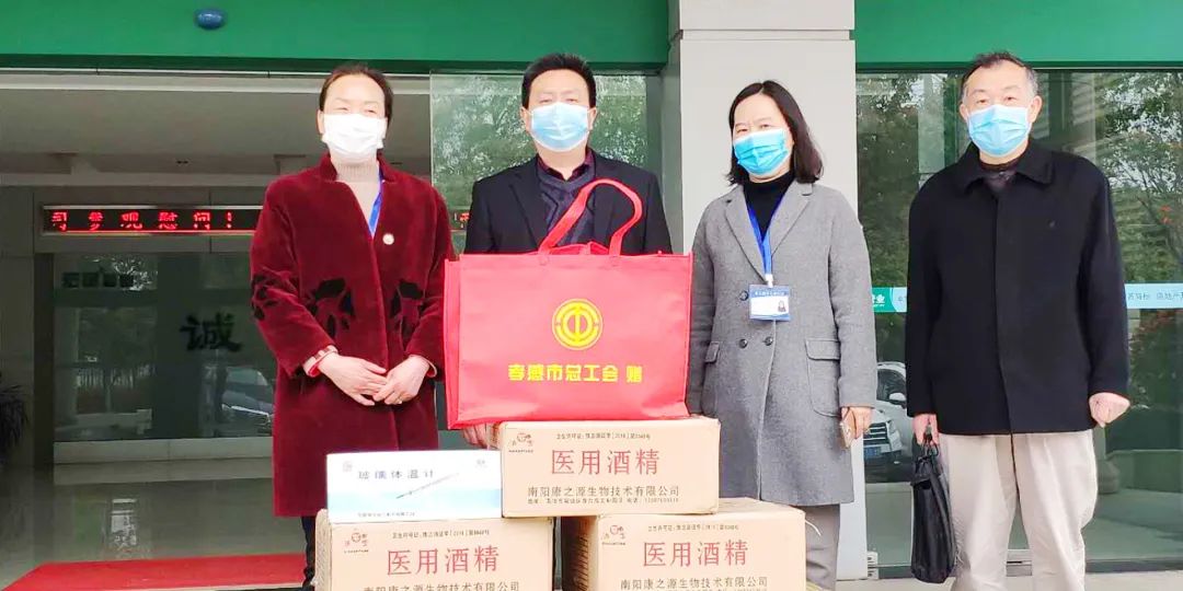 2020年4月2日,孝感市工会党组书记常务副主席孙淑萍、市工会副主席肖继玲、孝感高新区工会主席共同前往湖北乐鱼(中国)leyu塑胶有限公司慰问调研并向公司赠送了一次性医用口罩、医用酒精、水银温度计等防疫物资。